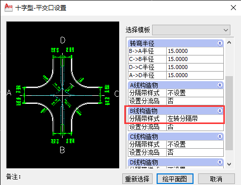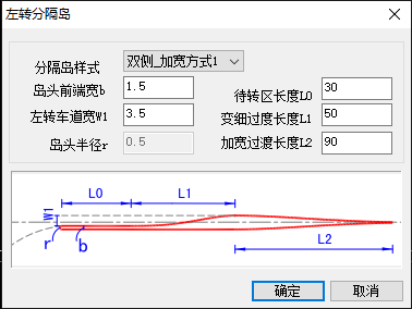 你好,这种情况在纬地平交口中可以通过添加左转分隔带来实现的,添加左转分隔带后,可在对应窗口对相关参数进行调整,如下图